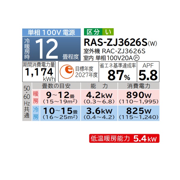 型番:RAS-ZJ3626S-W / RAS-ZJ3626SW / RASZJ3626SW