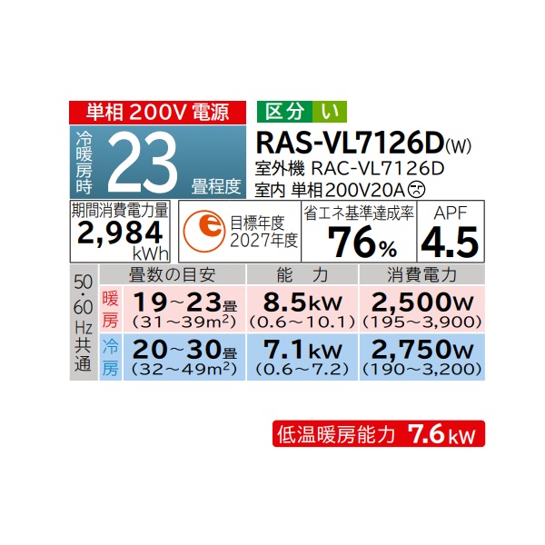 参考:RAS-VL7125D-Wの後継品