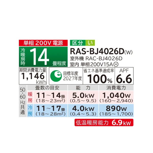 型番:RAS-BJ4026D-W / RAS-BJ4026D / RASBJ4026D