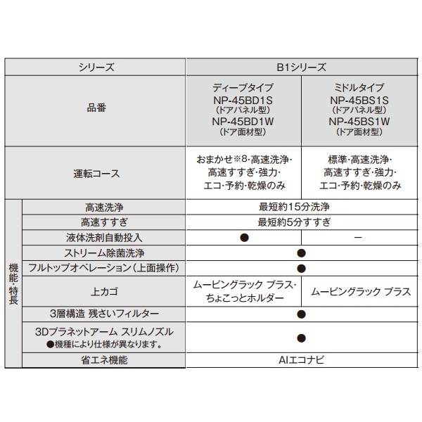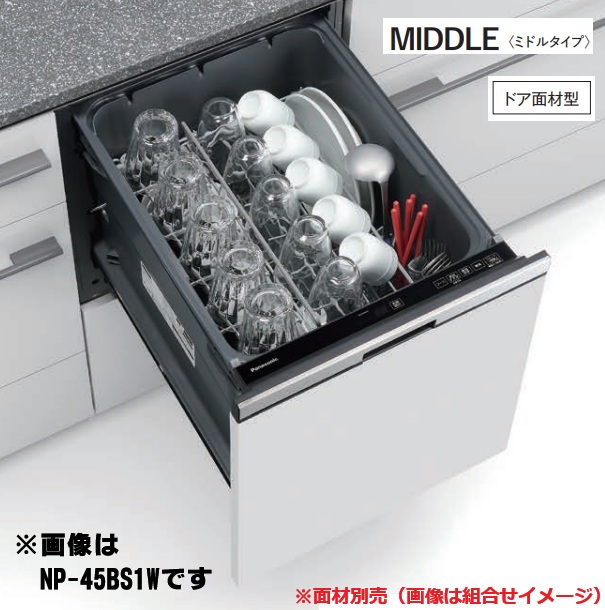 パナソニック NP-45BS1W 食洗機 ビルトイン 食器洗い乾燥機 幅45cm ミドルタイプ ドア面材型 B1シリーズ NP-45MS9W後継品 面材別売