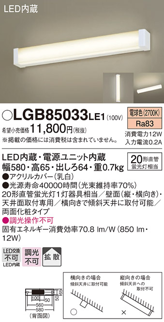 パナソニック LGB85033LE1 キッチンライト 天井直付型・壁直付型 LED(電球色) 20形直管蛍光灯1灯相当 ランプ同梱包 [lgb85033le1]