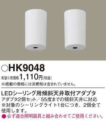 照明部材 パナソニック HK9048 シーリングライト 傾斜天井取付アダプタ LEDシーリング用 [hk9048]