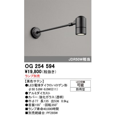 オーデリック OG254594 エクステリアスポットライト LED 防雨型 黒色サテン ランプ別売 [og254594]