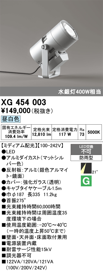 オーデリック XG454003 エクステリアスポットライト LED一体型 昼白色 ミディアム配光 防雨型 [xg454003]