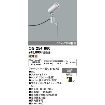 オーデリック OG254860 エクステリアスポットライト LED一体型 電球色 φ88 長180 ワイド配光 防雨型 シルバー