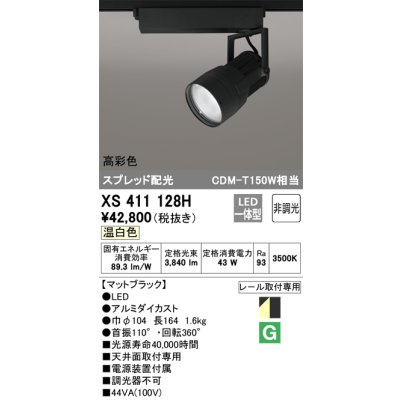 オーデリック XS411128H スポットライト スプレッド配光 LED一体型 C4000 CDM-T150W相当 温白色 高彩色 非調光 ブラック