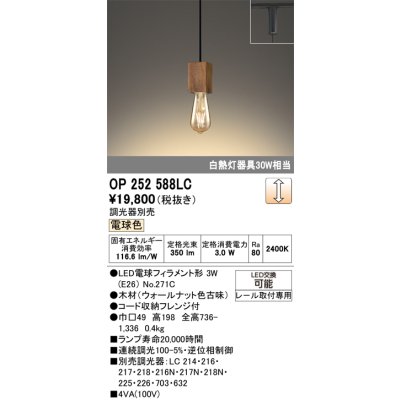 オーデリック OP252588LC(ランプ別梱) ペンダントライト LED電球フィラメント形 調光 プラグ 電球色 調光器別売