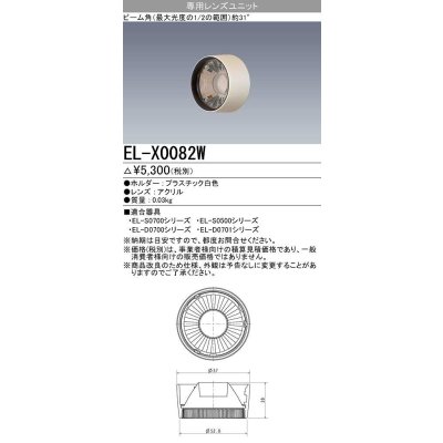 【メーカー品薄】三菱 EL-X0082W LEDダウンライト 集光シリーズ 専用レンズユニット ビーム角31°ホワイト