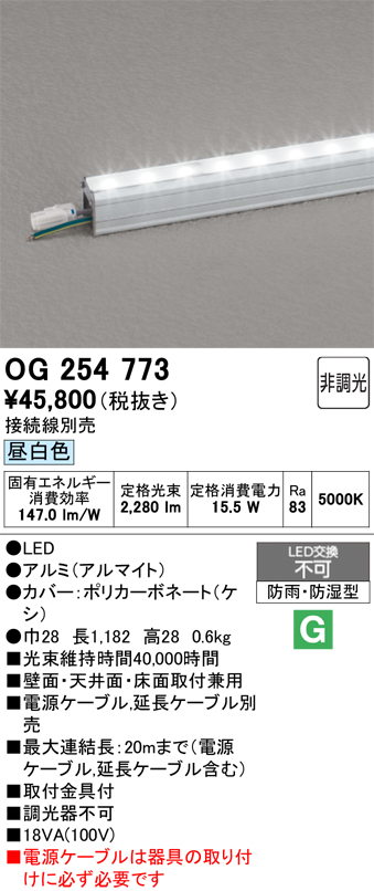オーデリック OG254773 間接照明 LED一体型 非調光 昼白色 接続線別売 防雨・防湿型 L1200タイプ