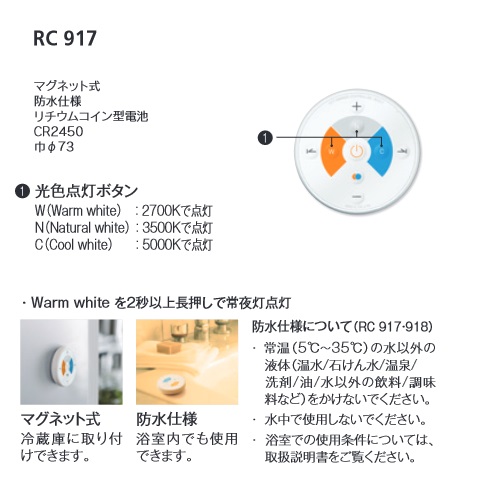 [在庫あり]オーデリック RC917 リモコンユニット Bluetooth 簡単リモコン 調光・調色 防水仕様 マグネット式 φ73 ☆ £ [rc917]