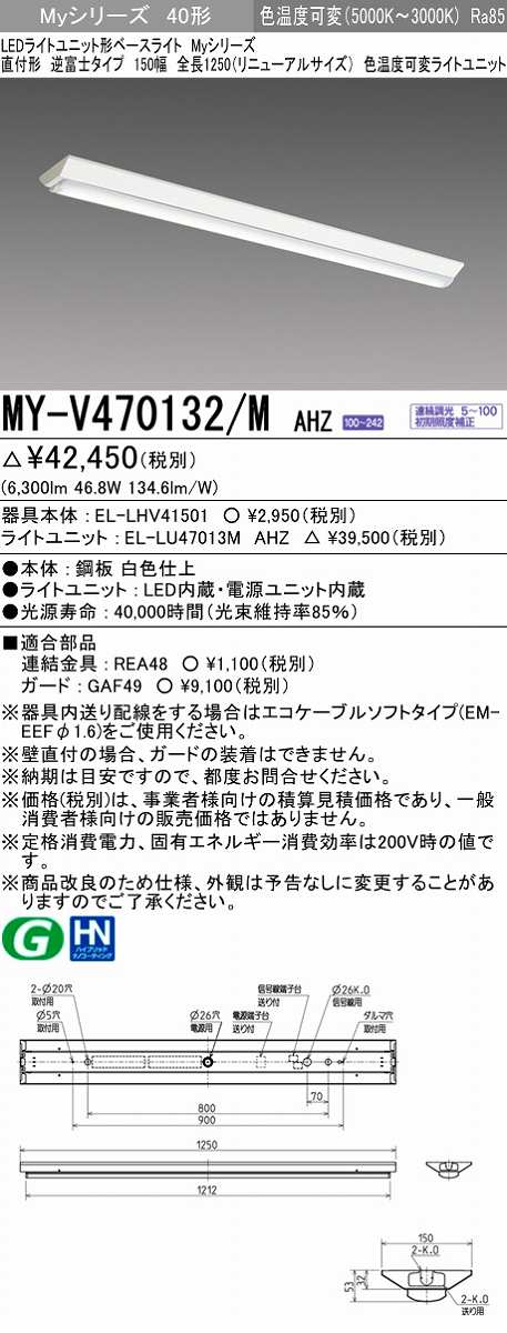 三菱 MY-V470132/M AHZ LEDライトユニット形ベースライト 直付形 150幅 一般タイプ 色温度可変 受注生産品 [§] [MY-V470132-MAHZ]