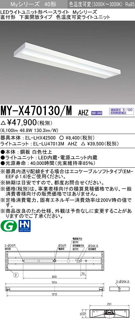 三菱 MY-X470130/M AHZ LEDライトユニット形ベースライト 直付形 下面開放 一般タイプ 色温度可変 受注生産品 [§]