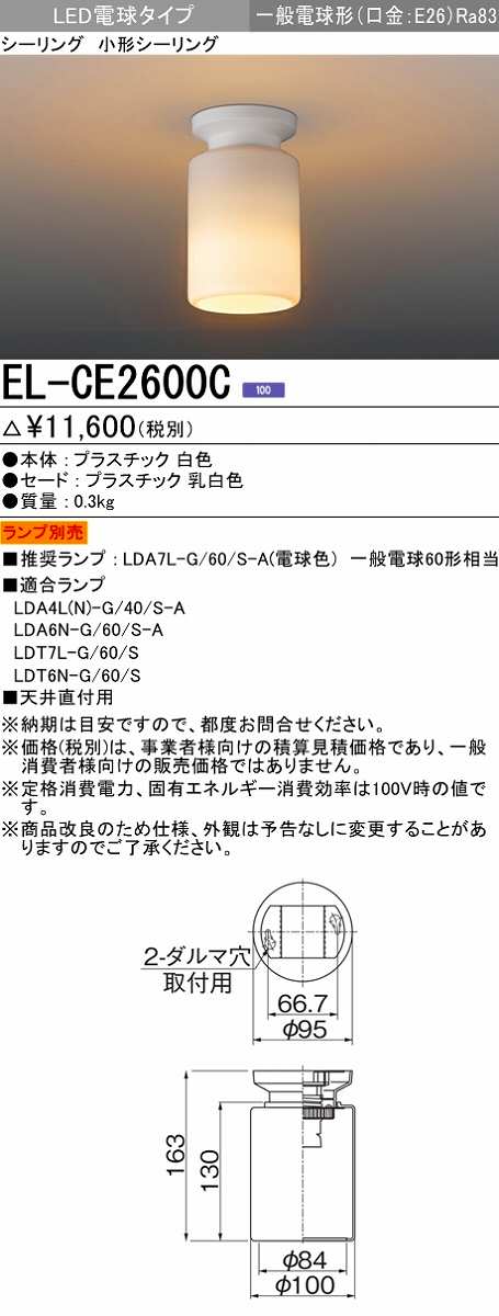 三菱 EL-CE2600C LED照明器具 LED電球搭載タイプ 小形シーリング ランプ別売 受注生産品 [§] [el-ce2600c]