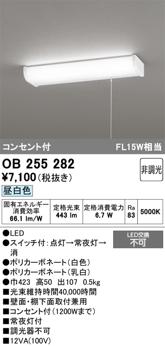 オーデリック OB255282 キッチンライト LED一体型 非調光 昼白色 コンセント付 [ob255282]