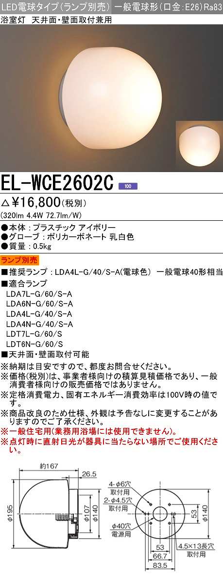 三菱 EL-WCE2602C LED照明器具 LED電球搭載タイプ 浴室灯 天井・壁面取付兼用 ランプ別売 受注生産品 [§] [el-wce2602c]
