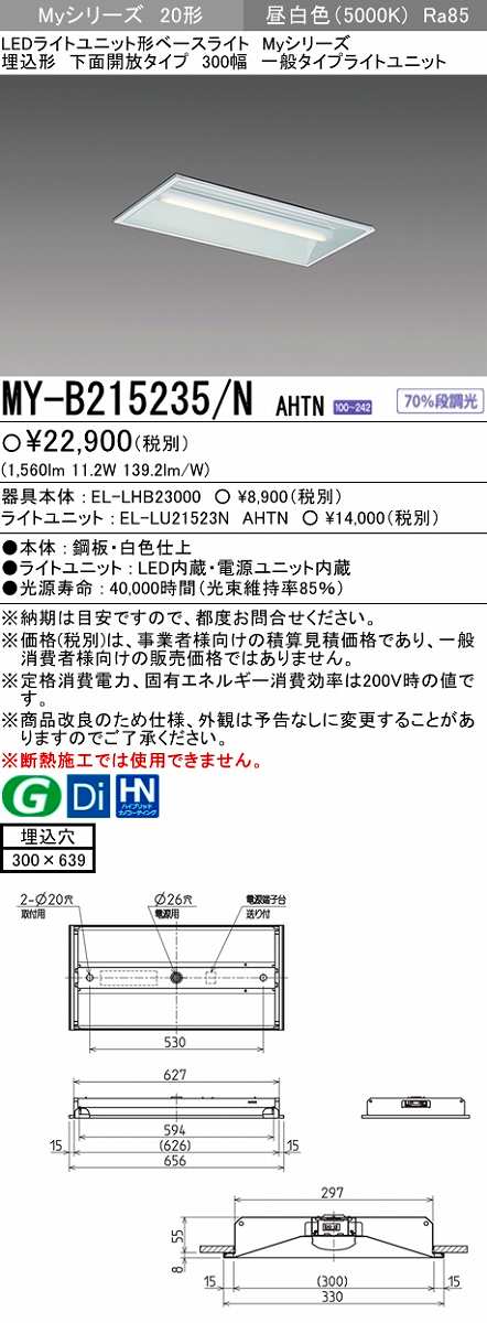 【メーカー品薄】三菱 MY-B215235/N AHTN LEDライトユニット形ベースライト 埋込形 300幅 一般タイプ 固定出力・段調光機能付 昼白色 [my-b215235-nahtn]