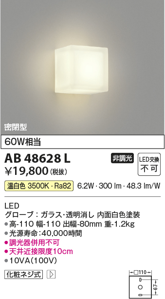 コイズミ照明 AB48628L LEDブラケットライト LED一体型 温白色 白熱球60W相当 透明 [ab48628l]
