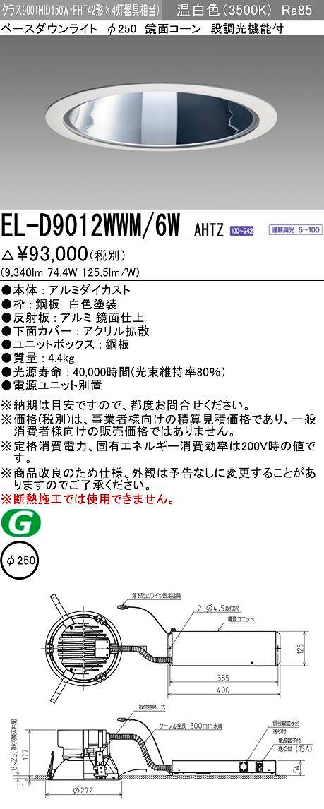 三菱 EL-D9012WWM/6WAHTZ LEDダウンライト 拡散シリーズ 一般用途 段調光機能付調光5〜100% 温白色 φ250 電源ユニット別置 受注生産品 [§] [el-d9012wwm-6wahtz]
