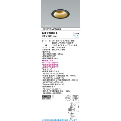 コイズミ照明 AU92089L LED防雨防湿ダウン LEDランプ別売 調光 ユニバーサル ON・OFF 埋込穴φ100 JDR65W/40W相当 ブラック [au92089l]