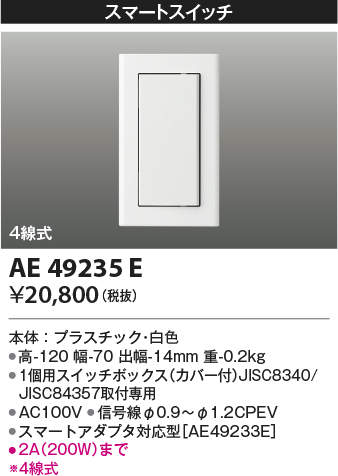 コイズミ照明 AE49235E ライトコントロ-ラ スマートスイッチ(スマートアダプタ対応) 白色 [ae49235e]