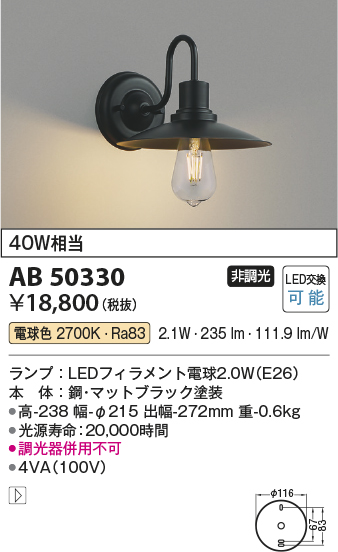 コイズミ照明 AB50330 ブラケットライト LEDランプ交換可能型 非調光 電球色 40W相当 ブラック [ab50330]
