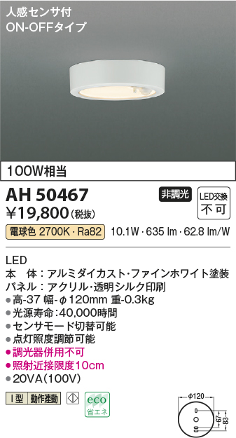 コイズミ照明 AH50467 小型シーリング LED一体型 非調光 電球色 人感センサ付 ON-OFFタイプ ホワイト