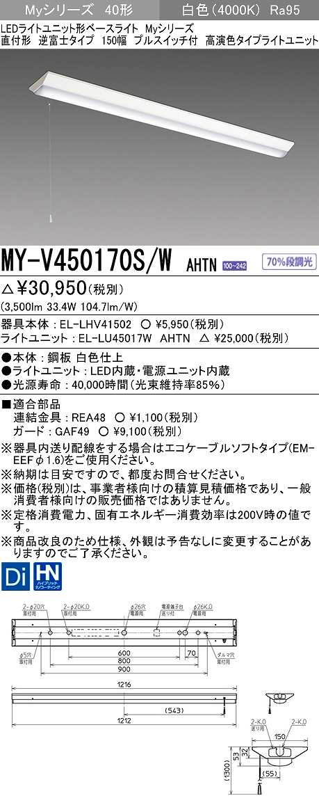 三菱 MY-V450170S/W AHTN LEDライトユニット形ベースライト 直付形 逆富士 高演色タイプ 固定出力 白色 受注生産品 [§]