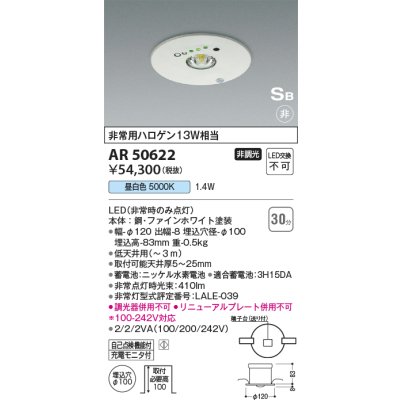 コイズミ照明 AR50622 非常用照明 LED一体型 非調光 昼白色 埋込型 S形 埋込穴φ100 ホワイト [ar50622]
