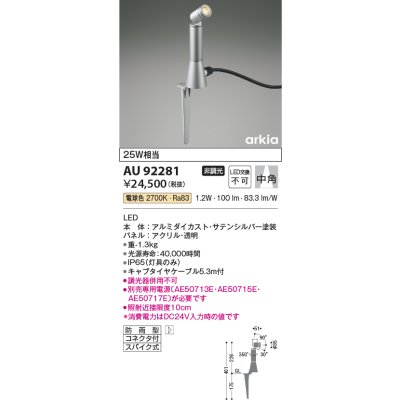 カテゴリ:照明器具 アウトドアライト スポットライト arkia DC24V