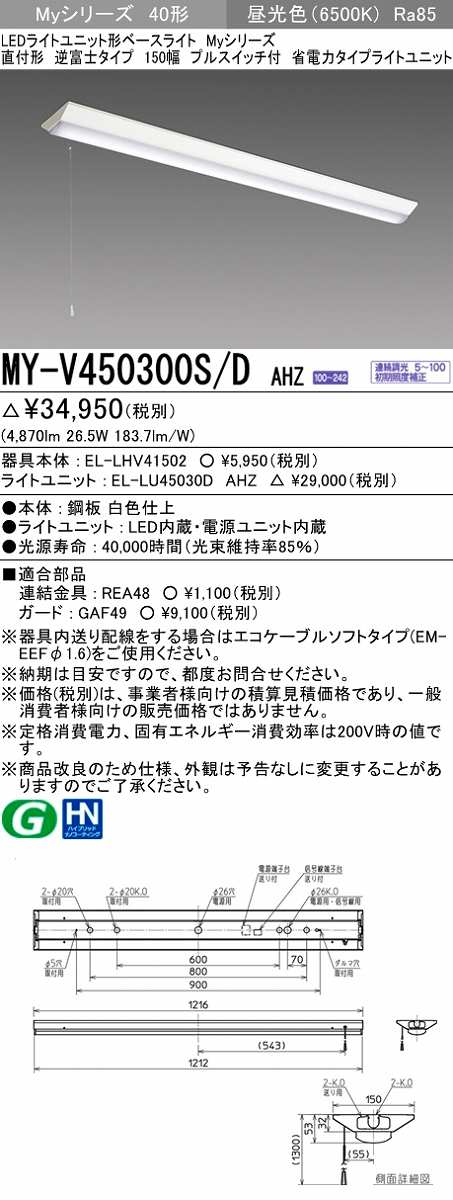 三菱 MY-V450300S/D AHZ LEDライトユニット形ベースライト 直付形 逆富士 省電力タイプ 初期照度補正付連続調光 昼光色 受注生産品 [§]