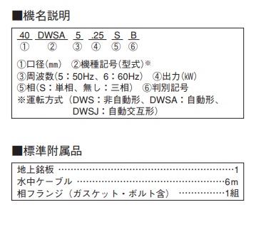 荏原製作所 【40DWSA5.15SA+40DWSJ5.15SA】 樹脂製汚水・雑排水用水中ポンプ 単相 50Hz DWSA型+DWSJ型セット ♪