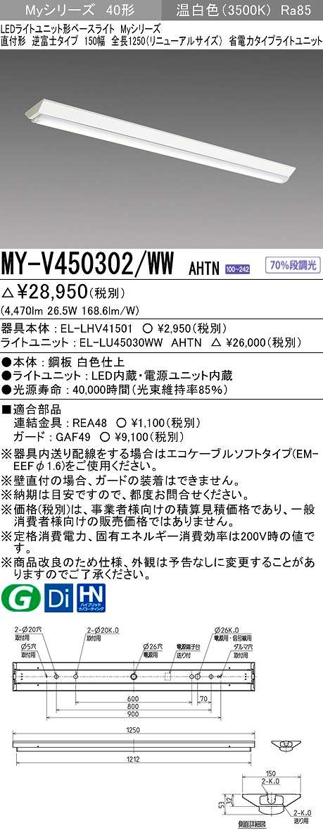 三菱 MY-V450302/WW AHTN LEDライトユニット形ベースライト 直付形 逆富士 省電力タイプ 固定出力 温白色 受注生産品 [§] [my-v450302-wwahtn]