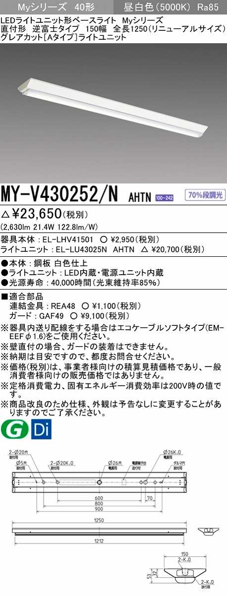 三菱 MY-V430252/N AHTN LEDライトユニット形ベースライト 直付形 逆富士 グレアカットタイプ 固定出力 昼白色 受注生産品 [§] [my-v430252-nahtn]