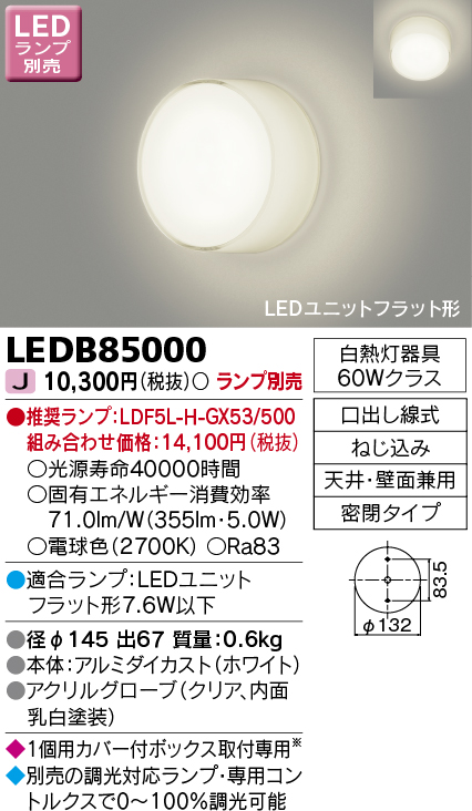 東芝ライテック LEDB85000 ブラケット LEDユニットフラット形 天井・壁面兼用 ランプ別売 [ledb85000]