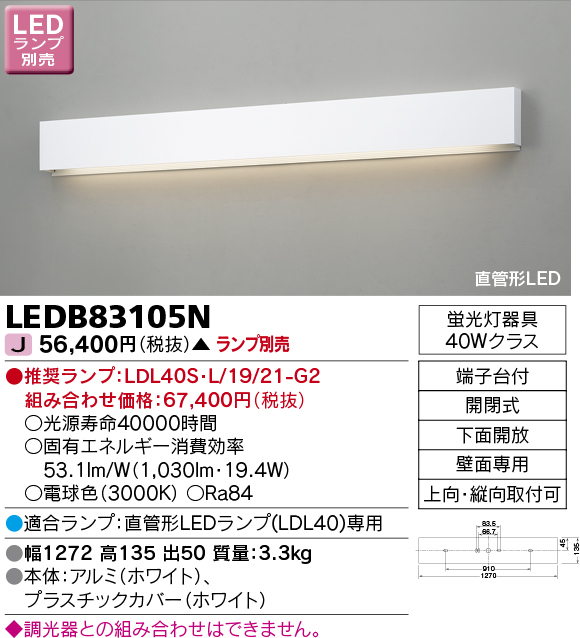 東芝ライテック LEDB83105N 吹き抜け・高天井ブラケット 直管形LED 下面開放 ホワイト ランプ別売 [ledb83105n]