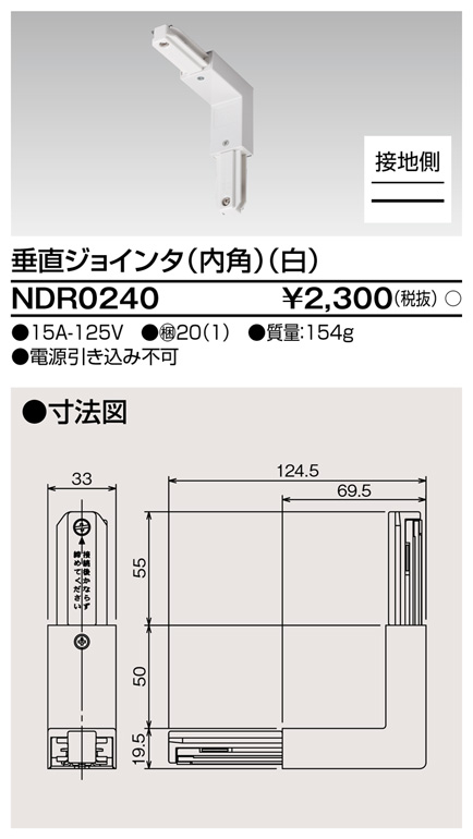 東芝ライテック NDR0240 ライティングレール VI形用 垂直ジョインタ(内角) 極性:有 白色 [ndr0240]