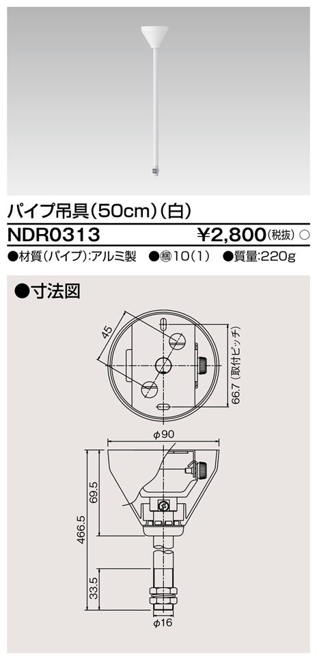 東芝ライテック NDR0313 ライティングレール VI形用 パイプ吊具 50cm 白色