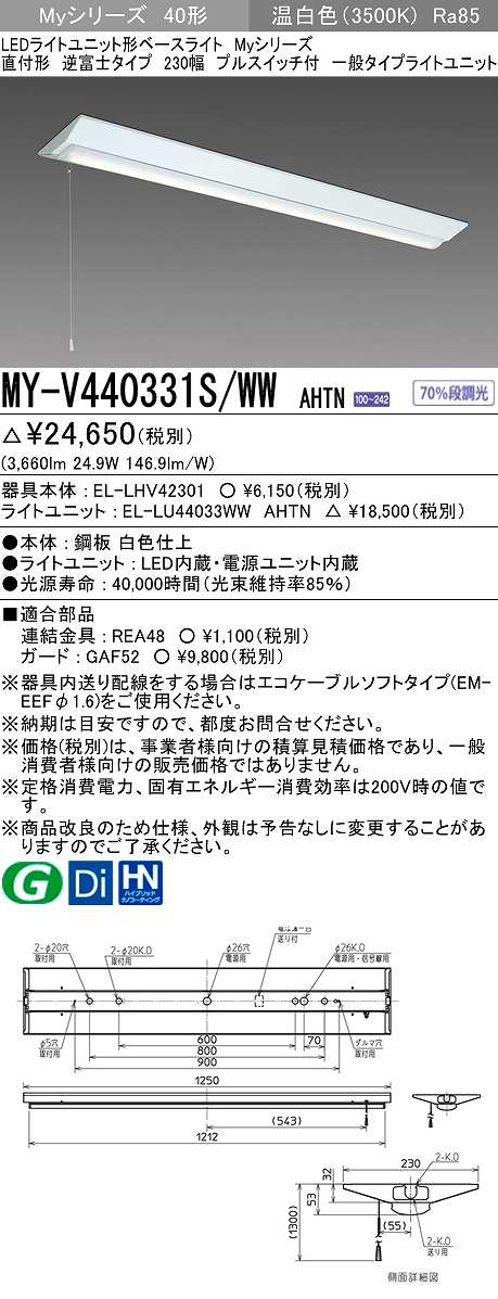 三菱 MY-V440331S/WW AHTN LEDライトユニット形ベースライト 直付形 逆富士 一般タイプ 固定出力 温白色 受注生産品 [§] [my-v440331s-wwahtn]