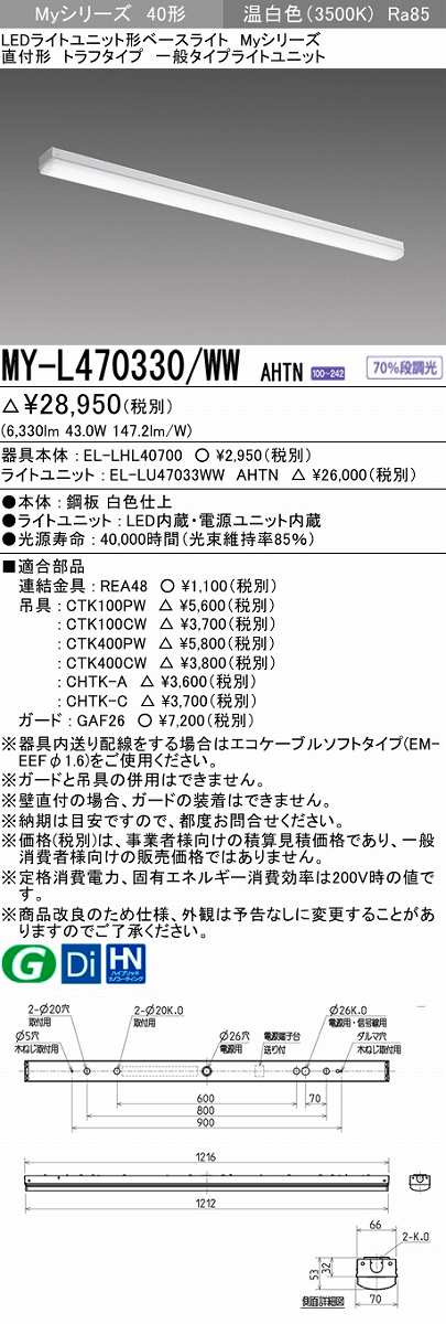 三菱 MY-L470330/WW AHTN LEDライトユニット形ベースライト 直付形 トラフ 一般タイプ 固定出力 温白色 受注生産品 [§] [my-l470330-wwahtn]