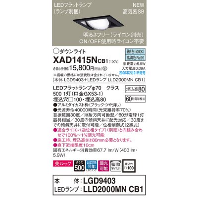 パナソニック XAD1415NCB1 ユニバーサルダウンライト 天井埋込型 LED(昼白色) 高気密SB形 拡散マイルド配光 調光(ライコン別売) 埋込穴□100 ブラック