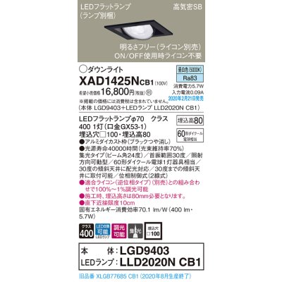 パナソニック XAD1425NCB1 ユニバーサルダウンライト 天井埋込型 LED(昼白色) 高気密SB形 集光24度 調光(ライコン別売) 埋込穴□100 ブラック