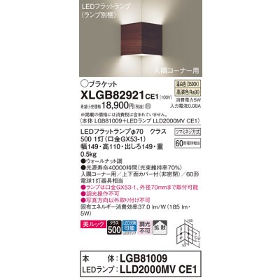 パナソニック XLGB82921CE1(ランプ別梱包) ブラケット 壁直付型 LED(温白色) 入隅コーナー用 美ルック・上下面カバー付(非密閉)・拡散 ウォールナット調 [xlgb82921ce1]