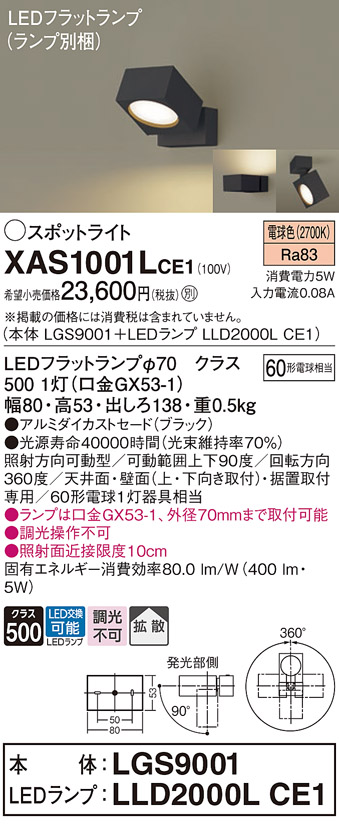 パナソニック XAS1001LCE1(ランプ別梱) スポットライト 天井直付型・壁直付型・据置取付型 LED(電球色) 拡散タイプ ブラック [xas1001lce1]