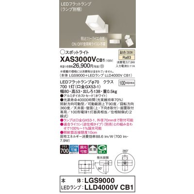 パナソニック XAS3000VCB1(ランプ別梱) スポットライト 天井直付型・壁直付型・据置取付型 LED(温白色) 拡散タイプ 調光(ライコン別売) ホワイト [xas3000vcb1]