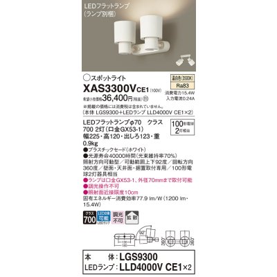 パナソニック XAS3300VCE1(ランプ別梱) スポットライト 天井直付型・壁直付型・据置取付型 LED(温白色) 拡散タイプ ホワイト [xas3300vce1]