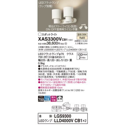 パナソニック XAS3300VCB1(ランプ別梱) スポットライト 天井直付型・壁直付型・据置取付型 LED(温白色) 拡散タイプ 調光(ライコン別売) ホワイト [xas3300vcb1]
