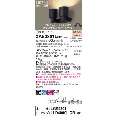 パナソニック XAS3301LCB1(ランプ別梱) スポットライト 天井直付型・壁直付型・据置取付型 LED(電球色) 拡散タイプ 調光(ライコン別売) ブラック [xas3301lcb1]