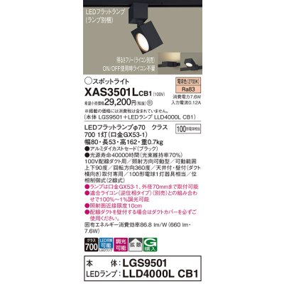 パナソニック XAS3501LCB1(ランプ別梱) スポットライト 配線ダクト取付型 LED(電球色) 拡散タイプ 調光(ライコン別売) ブラック [xas3501lcb1]