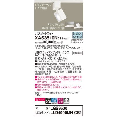 パナソニック XAS3510NCB1(ランプ別梱) スポットライト 配線ダクト取付型 LED(昼白色) 美ルック 拡散タイプ 調光(ライコン別売) ホワイト [xas3510ncb1]