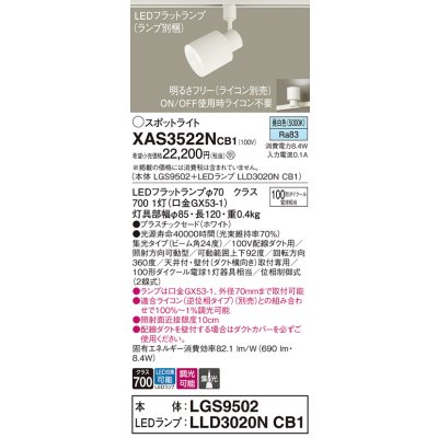 パナソニック XAS3522NCB1(ランプ別梱) スポットライト 配線ダクト取付型 LED(昼白色) 集光24度 調光(ライコン別売) ホワイト [xas3522ncb1]